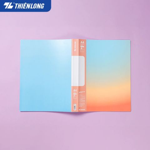Bìa 40 lá A4 Thiên Long DB-003 lưu trữ được đến 200 tờ A4 thích hợp để đựng tài liệu văn phòng, đề cương học tập học sinh. Bìa có màu sắc pastel gradient bắt mắt được nhiều người yêu thích.
