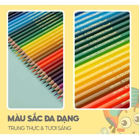 - Bút chì màu với thân bút lục giác dễ cầm nắm và thân thiện với người sử dụng.