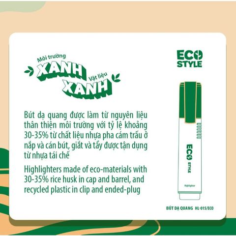 Bút Dạ Quang Màu Pastel - Eco Style Highlighter - Thiên Long HL-015/ECO - Vàng Pastel