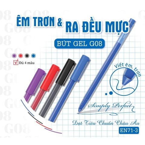 Thiết kế thanh lịch: Với thiết kế thon gọn và thanh lịch, bút G08 dễ dàng cầm nắm và viết mà không gây mệt mỏi cho người dùng.