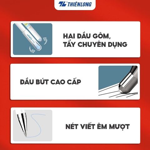 ▪️ Sản phẩm có 2 gôm/tẩy trên cán và nắp bút thuận tiện sử dụng khi xóa mực.