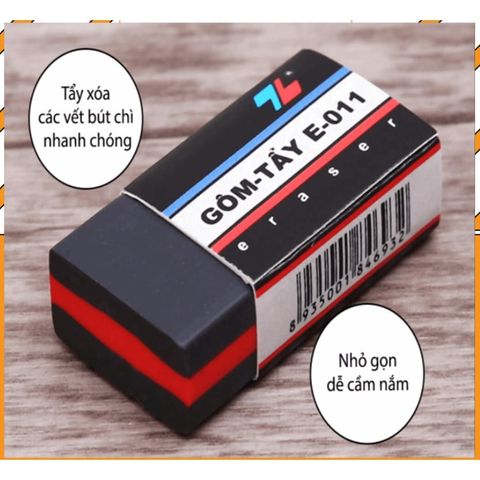 Gôm Đen E-011 được bọc giấy bảo vệ bên ngoài hạn chế tối đa dơ bẩn trong quá trình sử dụng. Sản phẩm có kích thước nhỏ gọn nên bạn cũng dễ dàng mang theo khi di chuyển mà không chiếm quá nhiều diện tích.
