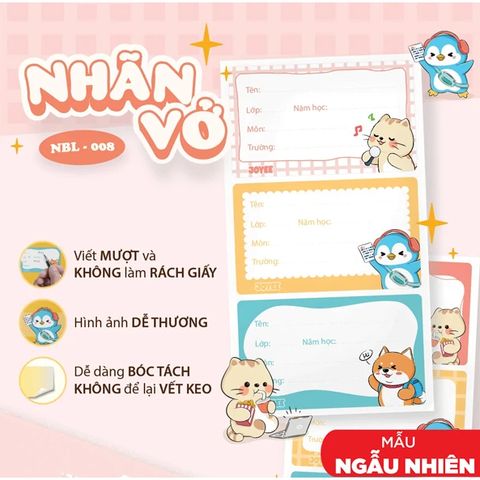 - Nhãn vở dạng đề can tiện dụng, bạn chỉ cần bóc phần giấy đằng sau và dán vào sách vở là có thể sử dụng được.