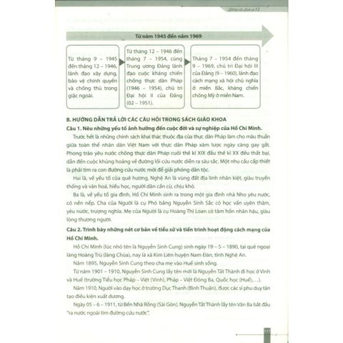 B. Hướng dẫn trả lời các câu hỏi trong sách giáo khoa: cung cấp định hướng giúp em trả lời các câu hỏi khởi động, gợi ý trả lời các câu hỏi thảo luận, luyện tập, vận dụng ở mỗi mục kiến thức và ở cuối bài nhằm có thêm tài liệu tham khảo, để so sánh với cách trả lời của mình và rút ra nhận xét, kết luận cần thiết; hình thành năng lực tự học, tự khám phá và vận dụng kiến thức vào cuộc sống; ôn luyện để chuẩn bị tốt nhất cho các bài kiểm tra thường xuyên và định kì.