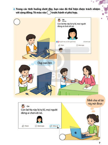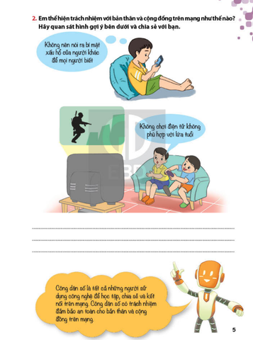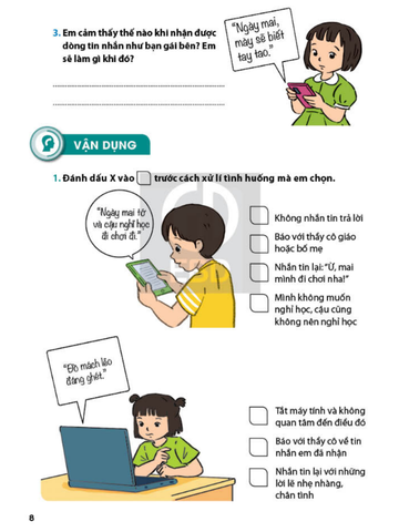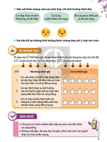 Để đạt được hiệu quả trong quá trình học tập, các em hãy chủ động thực hiện hoạt động trong sách và tích cực tương tác với bạn bè, thầy cô, người thân,… Bên cạnh đó, cuốn sách cũng là công cụ kết nối gia đình và nhà trường trong giáo dục con em sử dụng mạng an toàn, hữu ích.