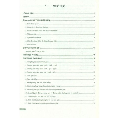 Ngoài các ví dụ và bài tập, trong sách có thêm phần Chuyên đề nhằm trang bị cho bạn đọc phương pháp giải Toán và mở rộng tầm nhìn. Cuối sách có Bài đọc thêm về lịch sử toán học.
