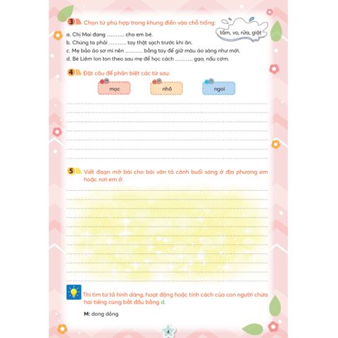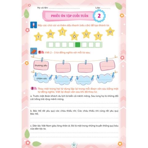– Về cấu trúc: Mỗi phiếu gồm nhiều bài tập ngắn gọn, theo mức độ từ cơ bản đến nâng cao. Các bài tập được thiết kế với nhiều hình thức khác nhau bao quát đầy đủ kiến thức Tiếng Việt theo sách giáo khoa Chân trời sáng tạo. Các câu hỏi, tình huống gần gũi, gắn liền với các hoạt động học tập, sinh hoạt hàng ngày, giúp các em cảm thấy nhẹ nhàng, thú vị khi làm bài.