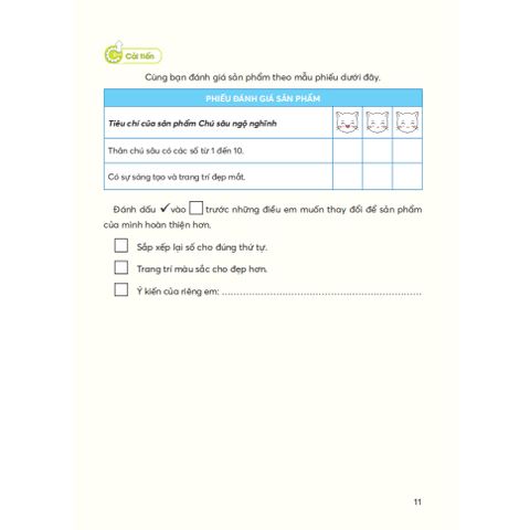 Hệ thống phiếu bài tập có sẵn: Cuốn sách cung cấp các phiếu bài tập cho học sinh, giúp các em nhanh chóng thực hiện các hành động điển hình trong giáo dục STEM như: Quan sát, phát hiện vấn đề, đặt câu hỏi, tìm tòi khám phá, thiết kế, thi công, đánh giá, dự đoán, thí nghiệm kiểm tra, tính toán, phân loại, v.v.