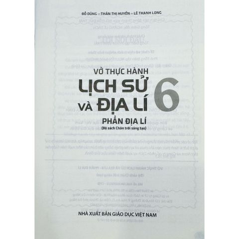 Vở thực hành Lịch sử và Địa lí 6 (phần Địa lí) (bộ sách Chân trời sáng tạo) sẽ giúp các em củng cố và vận dụng kiến thức của sách giáo khoa vào thực tiễn, phát triển tư duy và năng lực địa lí.
