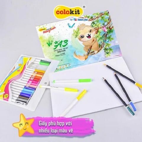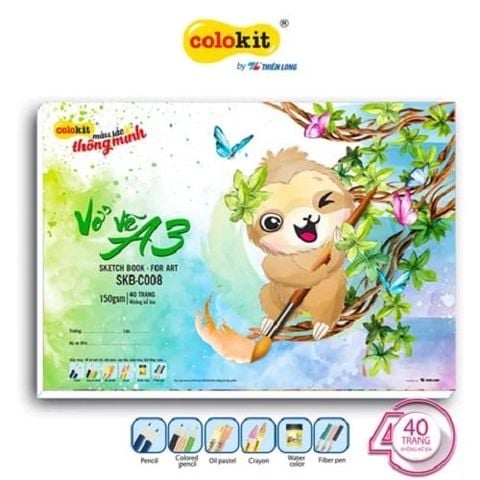 Vở vẽ Sketch Book for Art Thiên Long Colokit là loại vở hỗ trợ vẽ mỹ thuật với thiết kế giấy chuyên dụng, định lượng giấy dày hơn, sử dụng tốt với các loại màu mà không sợ bị lem hay thấm.
